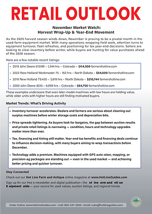 As the 2025 harvest season winds down, November is proving to be a pivotal month in the used‐farm‐equipment market. With many operations wrapping field work, attention turns to equipment turnover, fleet refreshes, and positioning for tax year‐end decisions. Sellers are looking to clear inventory before winter, while buyers are hunting for value purchases ahead of the 2026 season.