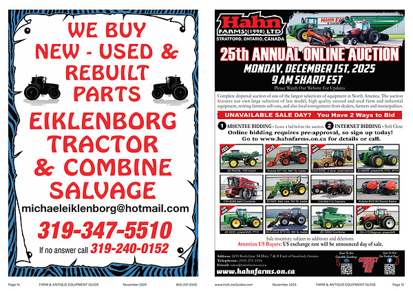 www. HotLineGuides. com November 2025 FARM & ANTIQUE EQUIPMENT GUIDE Page 15