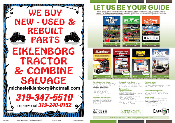 Page 16 FARM & ANTIQUE EQUIPMENT GUIDE October 2025 1-800-673-4763