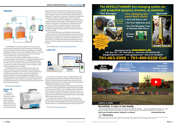 The system also includes a grain level indicator, which tracks inventory by yard, bin and grain type. Bin-Sense Plus can reduce the risk of spoilage and over-drying with automated aeration based on conditions both inside and outside the bin.