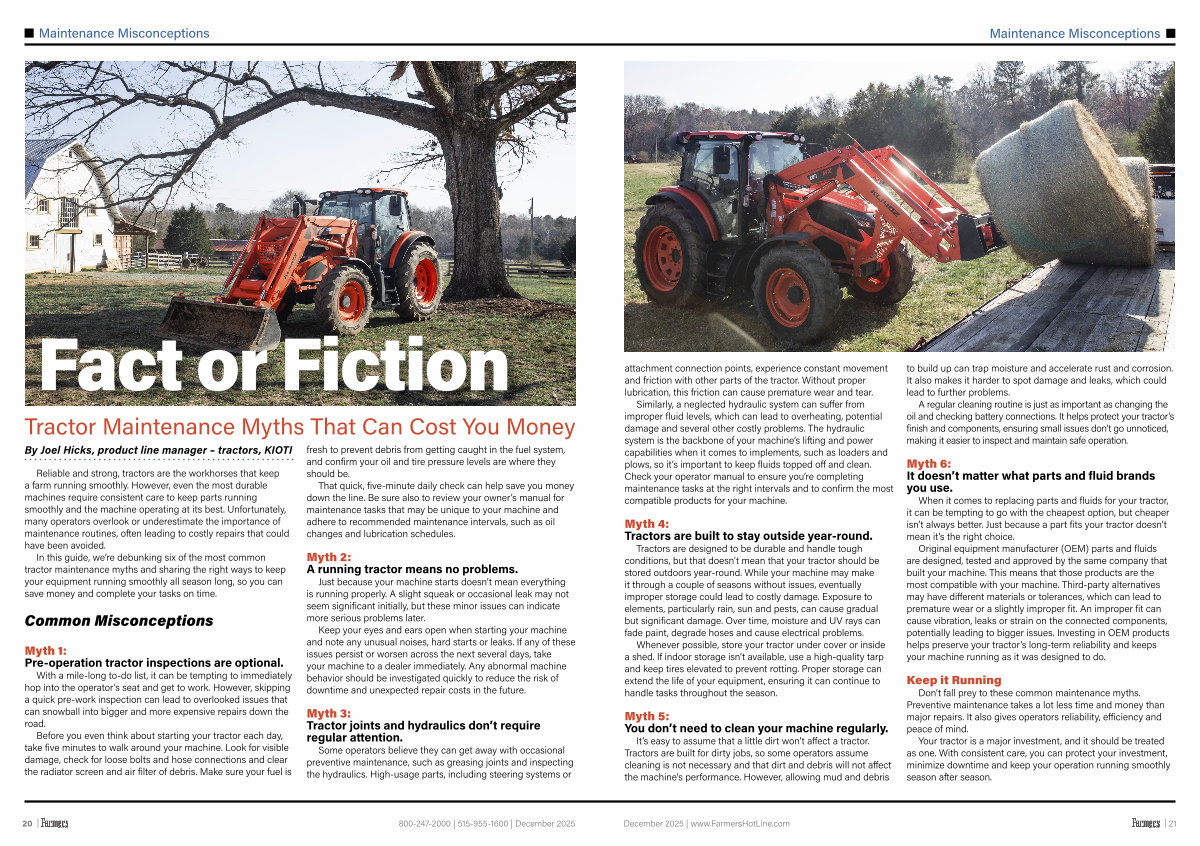 Your tractor is a major investment, and it should be treated as one. With consistent care, you can protect your investment, minimize downtime and keep your operation running smoothly season after season.