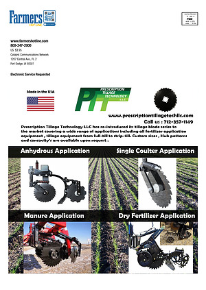 Prescription Tillage Technology LLC has re-introduced its tillage blade series to the market covering a wide range of applications including all fertilizer application equipment, tillage equipment from full-till to strip-till. Custom sizes, Hub patterns and concavity’ s are available upon request.