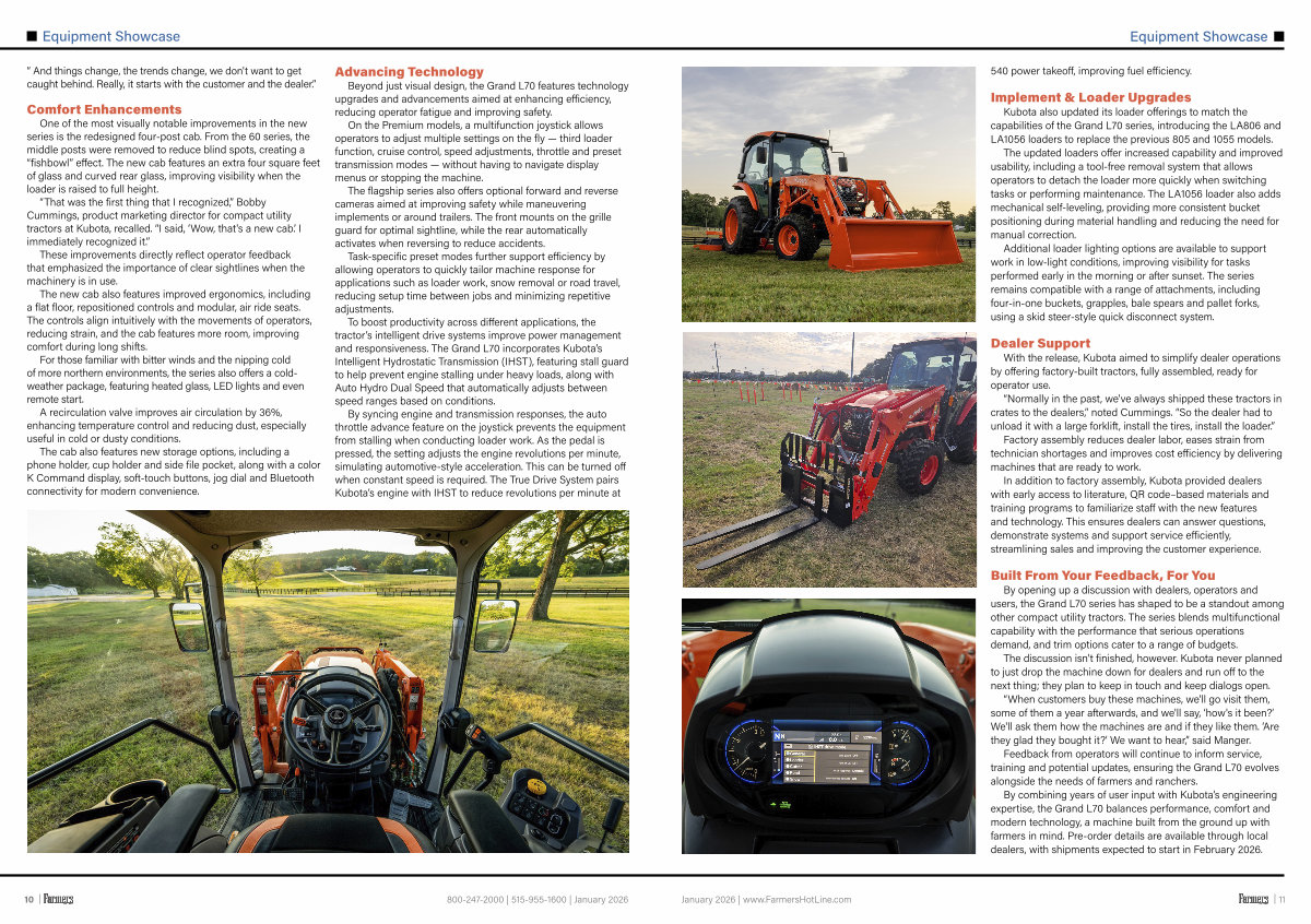 To boost productivity across different applications, the tractor’ s intelligent drive systems improve power management and responsiveness. The Grand L70 incorporates Kubota’ s Intelligent Hydrostatic Transmission( IHST), featuring stall guard to help prevent engine stalling under heavy loads, along with Auto Hydro Dual Speed that automatically adjusts between speed ranges based on conditions.