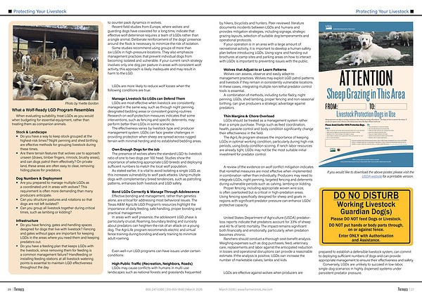 • Are you prepared to manage multiple LGDs as a coordinated unit in areas with wolves? This requirement is often more demanding than many producers anticipate.