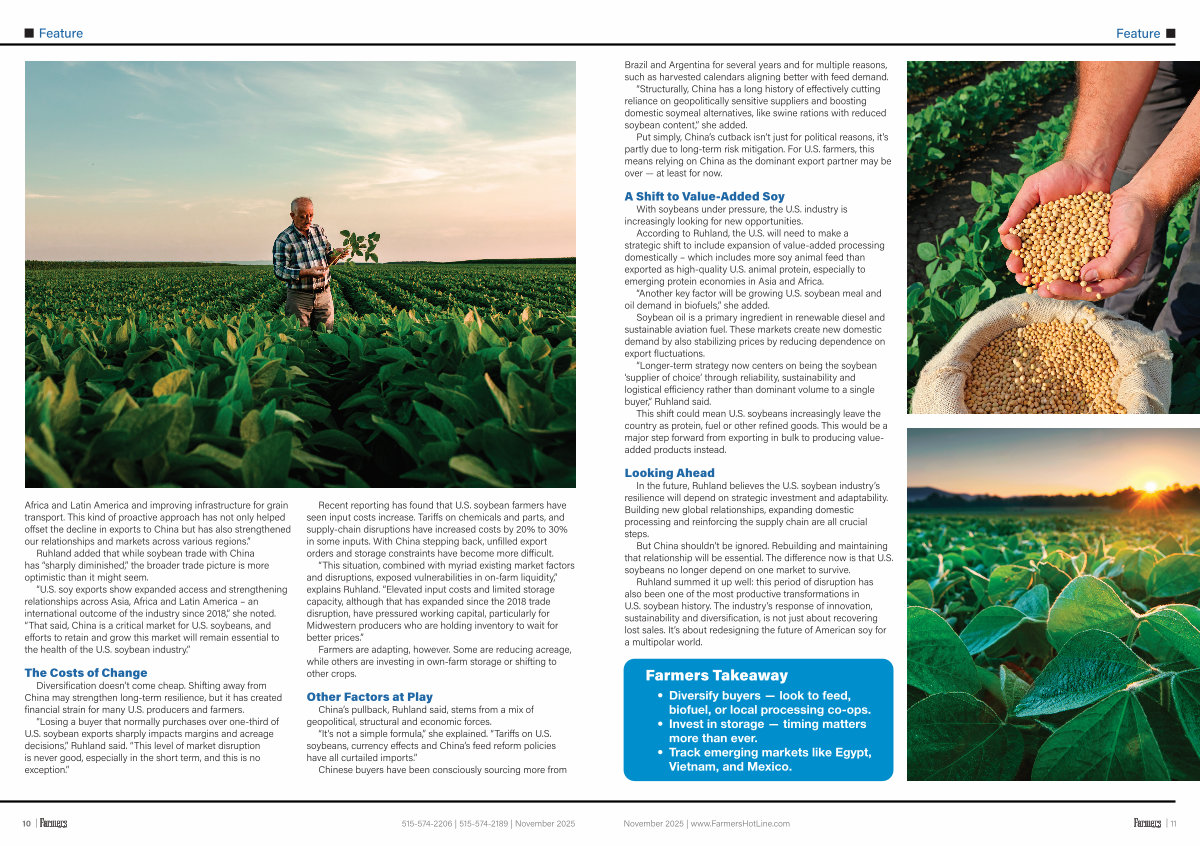 Recent reporting has found that U. S. soybean farmers have seen input costs increase. Tariffs on chemicals and parts, and supply-chain disruptions have increased costs by 20 % to 30 % in some inputs. With China stepping back, unfilled export orders and storage constraints have become more difficult.