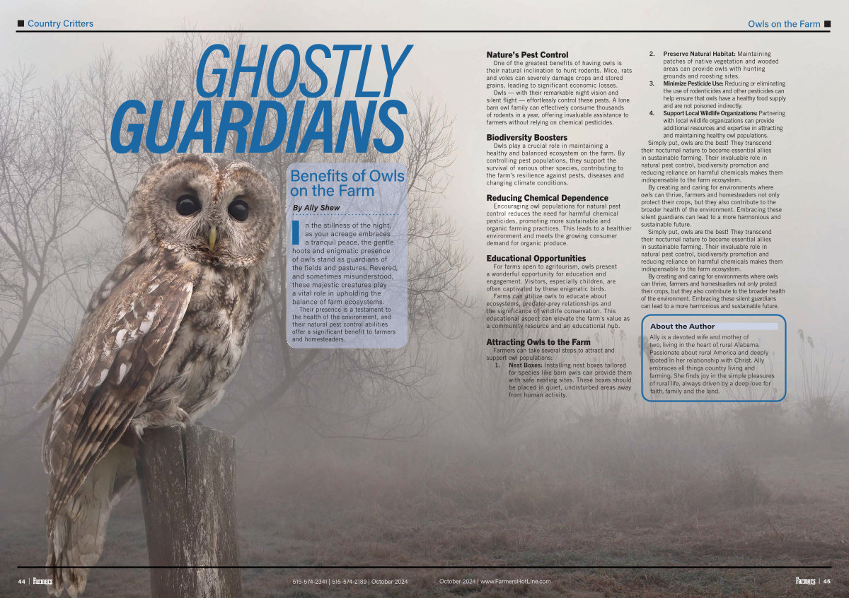By creating and caring for environments where owls can thrive, farmers and homesteaders not only protect their crops, but they also contribute to the broader health of the environment. Embracing these silent guardians can lead to a more harmonious and sustainable future.