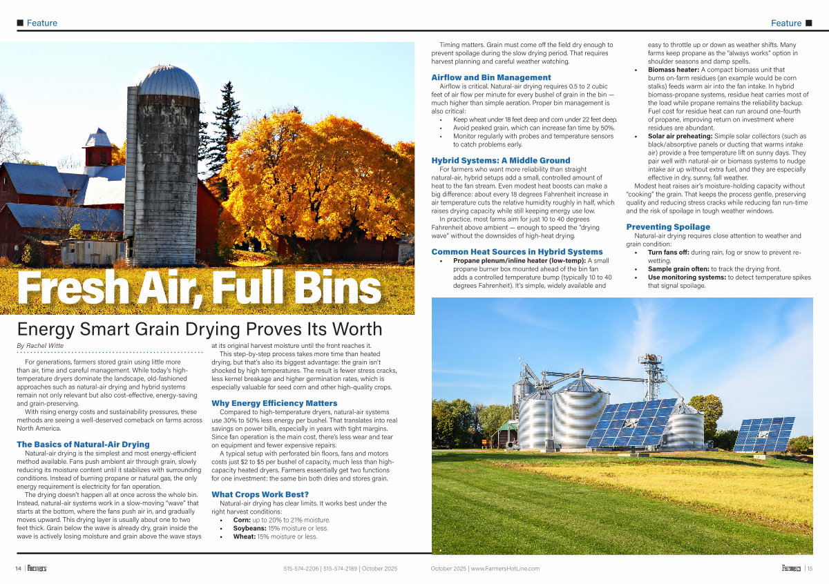 For generations, farmers stored grain using little more than air, time and careful management. While today’ s hightemperature dryers dominate the landscape, old-fashioned approaches such as natural-air drying and hybrid systems remain not only relevant but also cost-effective, energy-saving and grain-preserving.