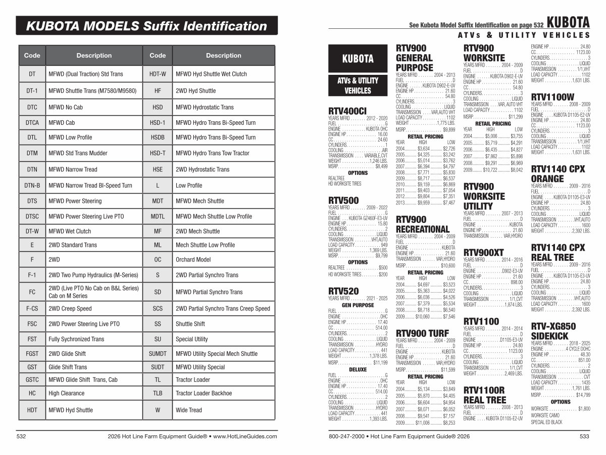 See Kubota Model Suffix Identification on page 532 KUBOTA a t v s & u t i l i t y v e h i c l e s