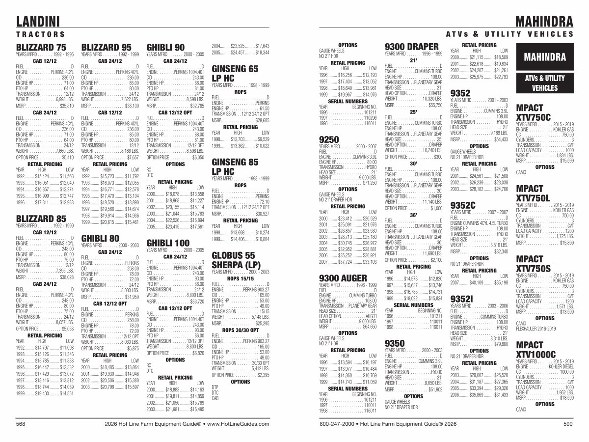 800-247-2000 • Hot Line Farm Equipment Guide ® 2026 599